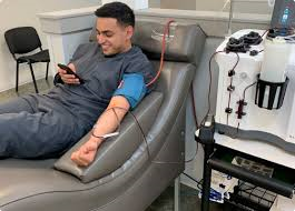 You sit down on one of the donation tables where a staff member hooks You up to a donation machine.